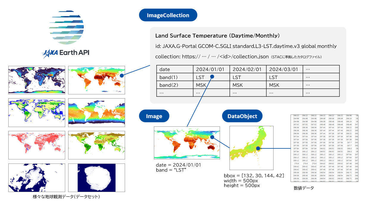 JAXA Earth API for JavaScript では、各データセットに対応するものをImageCollectionと呼んでいます。